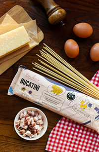 Emilia’s retail products remain authentic not only in production but also in variety. Including products like rigatoni, a slightly curved, tubular-shaped pasta with square ends, originating from Rome. Bucatini, a thick spaghetti-like pasta with a hole running through; and casarecce, a short, twisted pasta shape with its origins in Sicily. The company also packs its pasta in 100% recyclable, paper-made material with no plastic window.